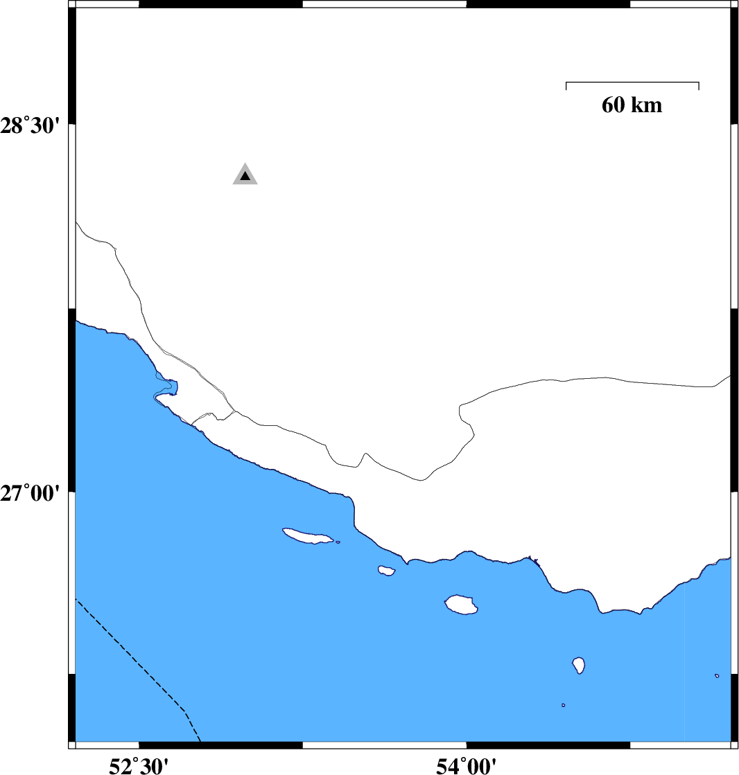2010/02/19 | 10:12:20.2 | 13:42:20.2 | 27.47 | 53.71 | 44 | ML:3.3 | 55 km North-East of Lamerd, Fars Province | ||