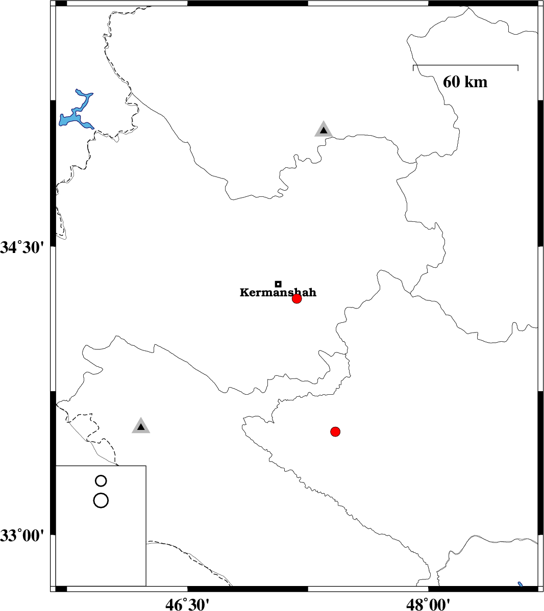2010/02/19 | 16:51:55.8 | 20:21:55.8 | 34.23 | 47.18 | 14 | ML:2.7 | 14 km East of Kermanshah, Kermanshah Province | ||