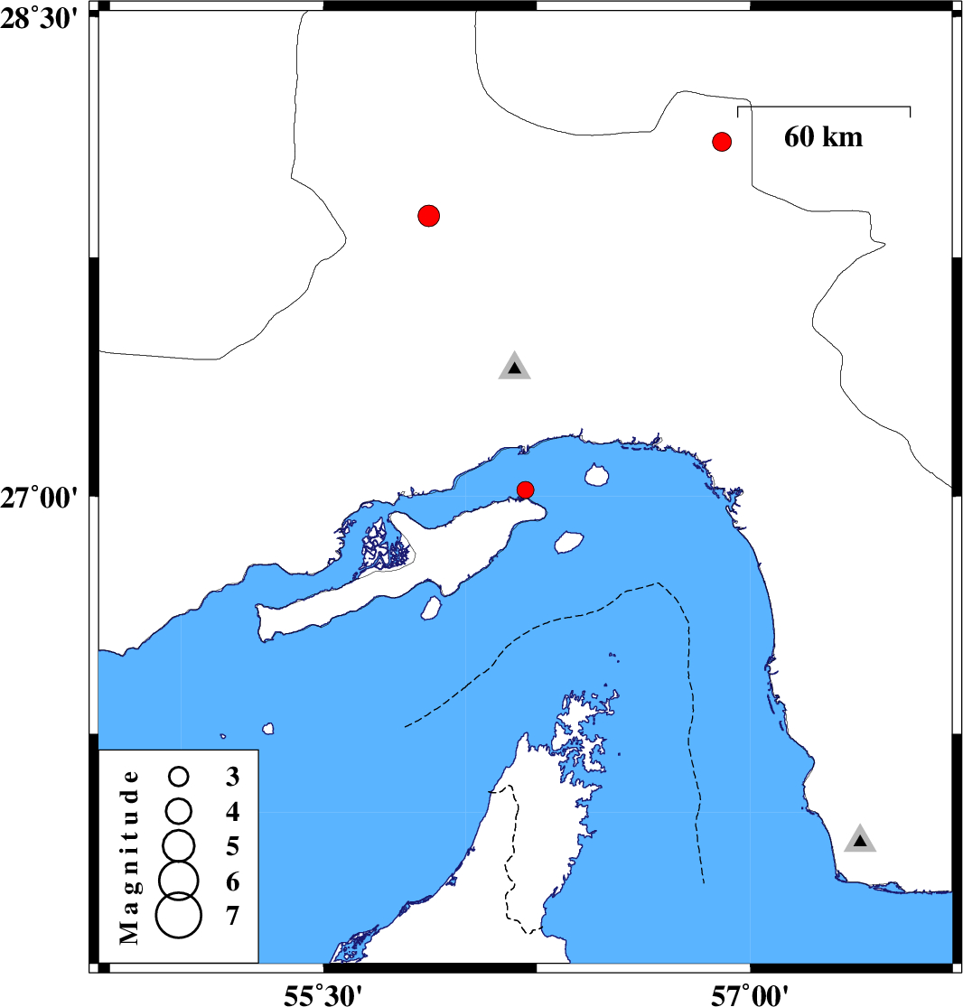 2010/02/26 | 00:17:58.8 | 03:47:58.8 | 28.11 | 56.9 | 28 | ML:3 | Hormozgan Province, 80 km North-West of Kahnuj | ||