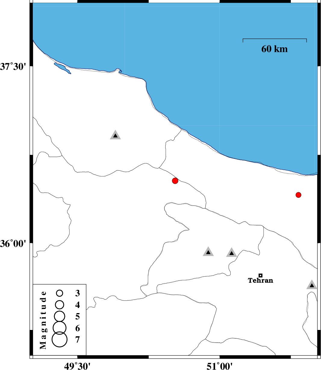 2010/03/20 | 07:58:46.1 | 11:28:46.1 | 36.41 | 51.83 | 18 | ML:2.6 | Mazandaran Province, 26 km South-West of Nur |