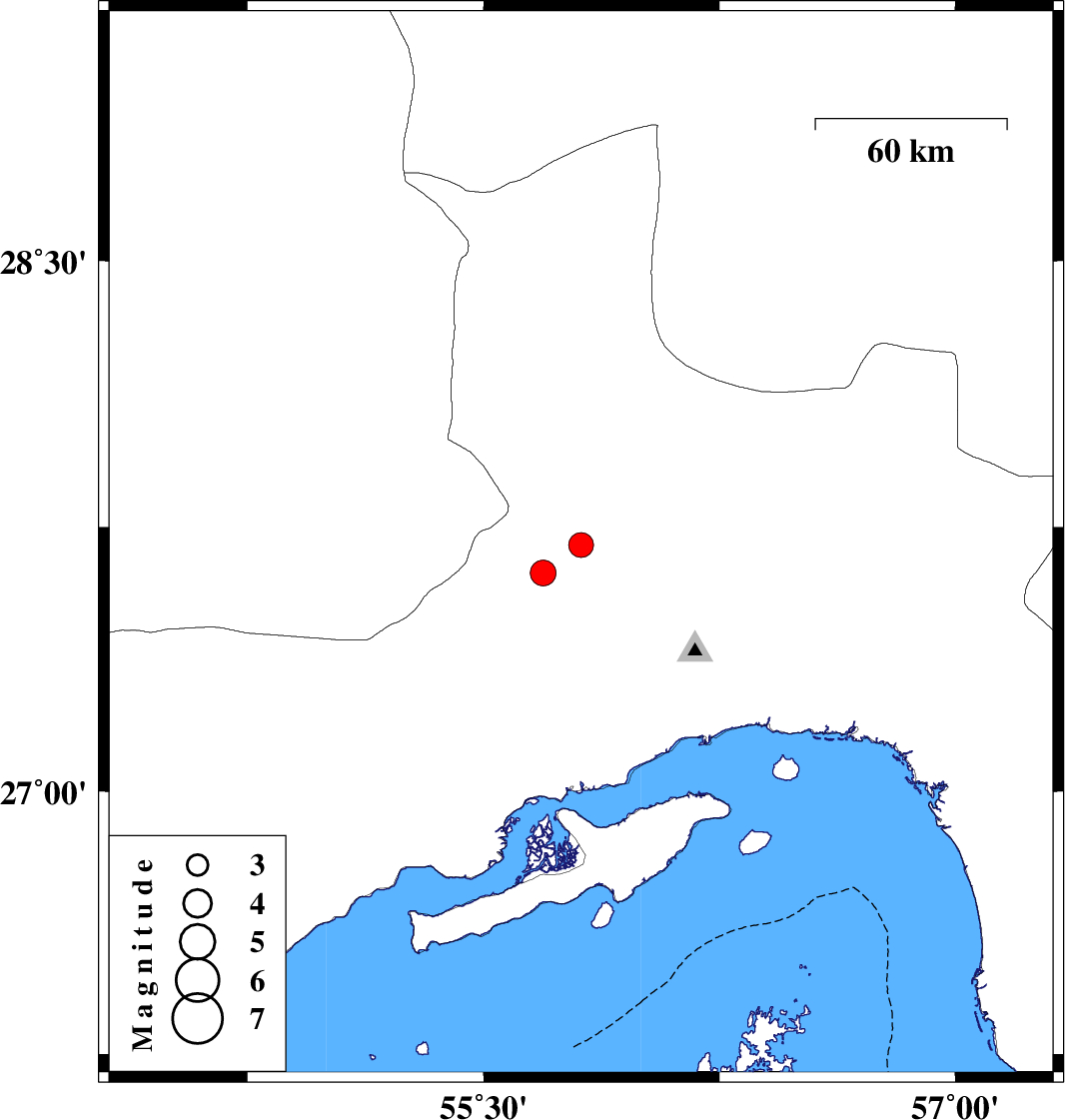 2009/07/02 | 21:06:15.0 | 01:36:15.0 | 27.62 | 55.69 | 15 | ML:3.6 | Hormozgan Province, 79 km South-West of Hajiabad |