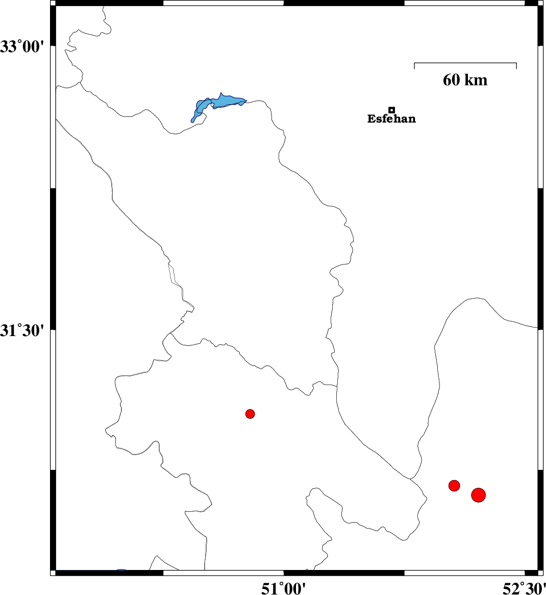 2009/07/08 | 14:44:50.9 | 19:14:50.9 | 31.71 | 51.08 | 41 | ML:3.9 | Chaharmahal Bakhtiari Province, 35 km South-West of Borujen | ||