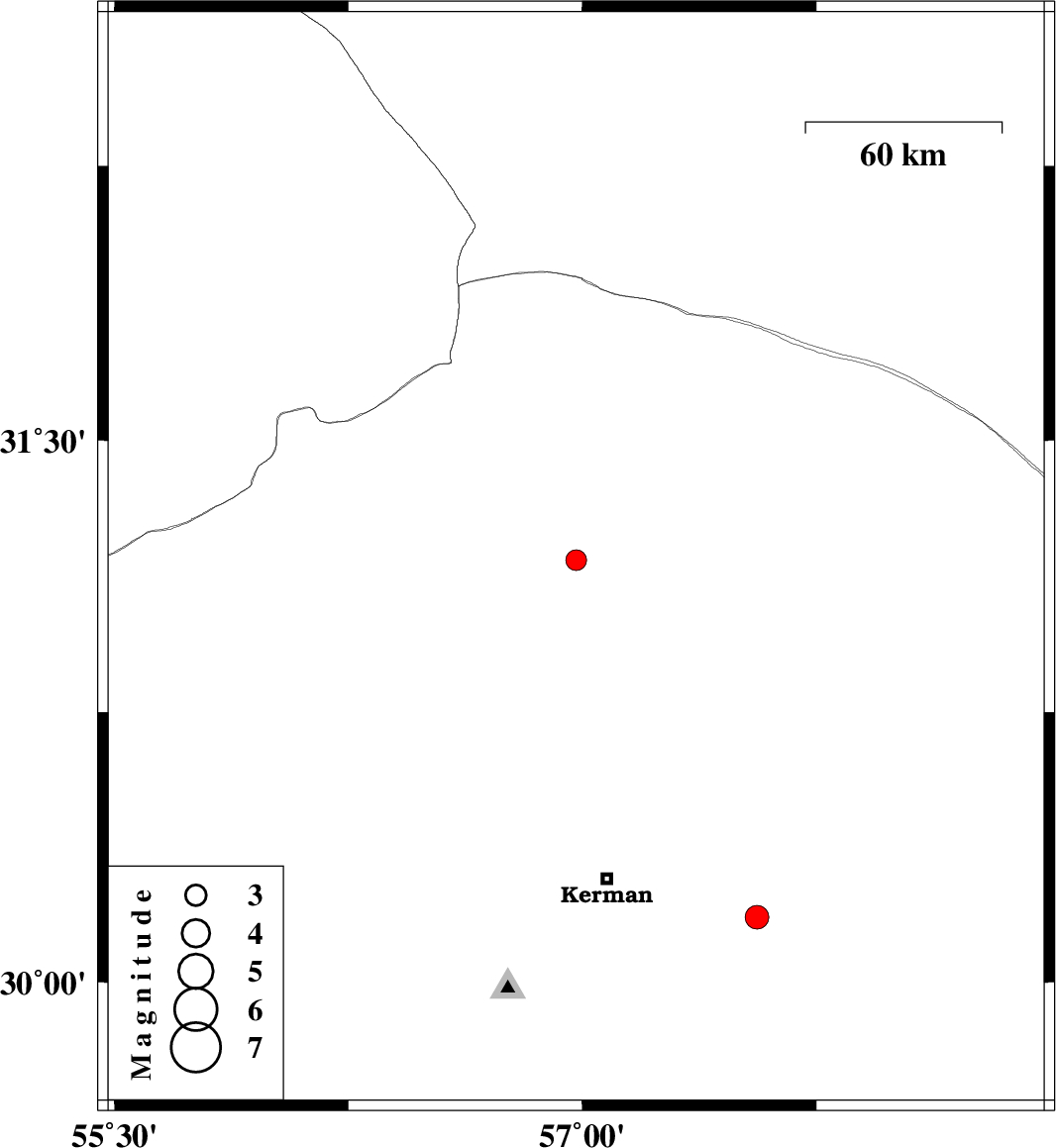 2009/07/06 | 12:01:27.0 | 16:31:27.0 | 30.18 | 57.56 | 15 | ML:3.4 | Kerman Province, 48 km South-East of Kerman |