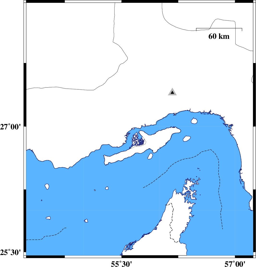2009/07/22 05:20:49.8 09:50:49.8 26.5455.757 ML:3 Persian Gulf, 90 km East of Bandar-e lengeh