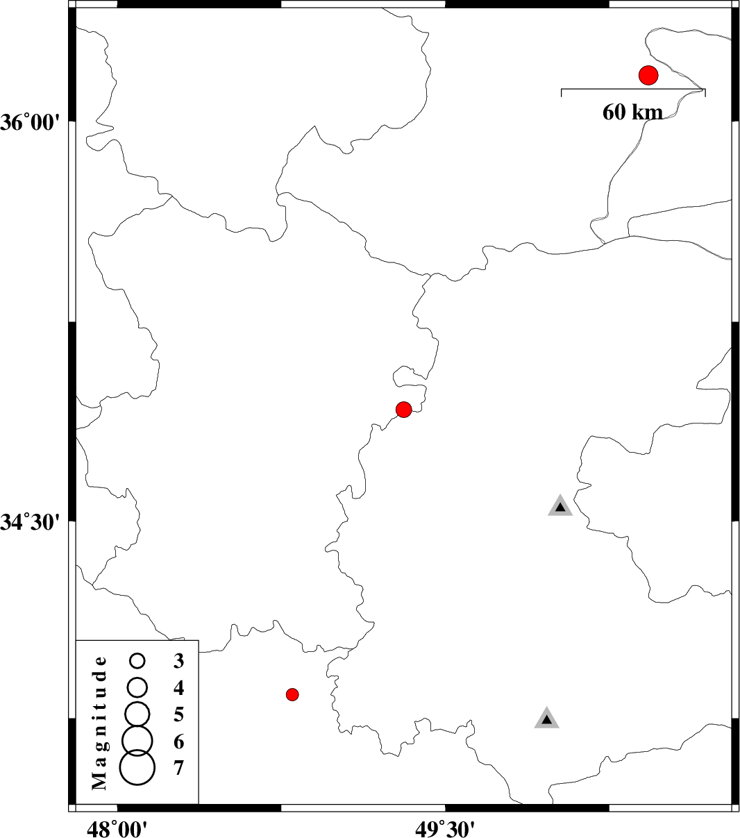 2009/08/04 | 00:59:16.2 | 05:29:16.2 | 34.92 | 49.31 | 16 | ML:3.3 | Hamedan Province, 57 km South-East of Razan | ||