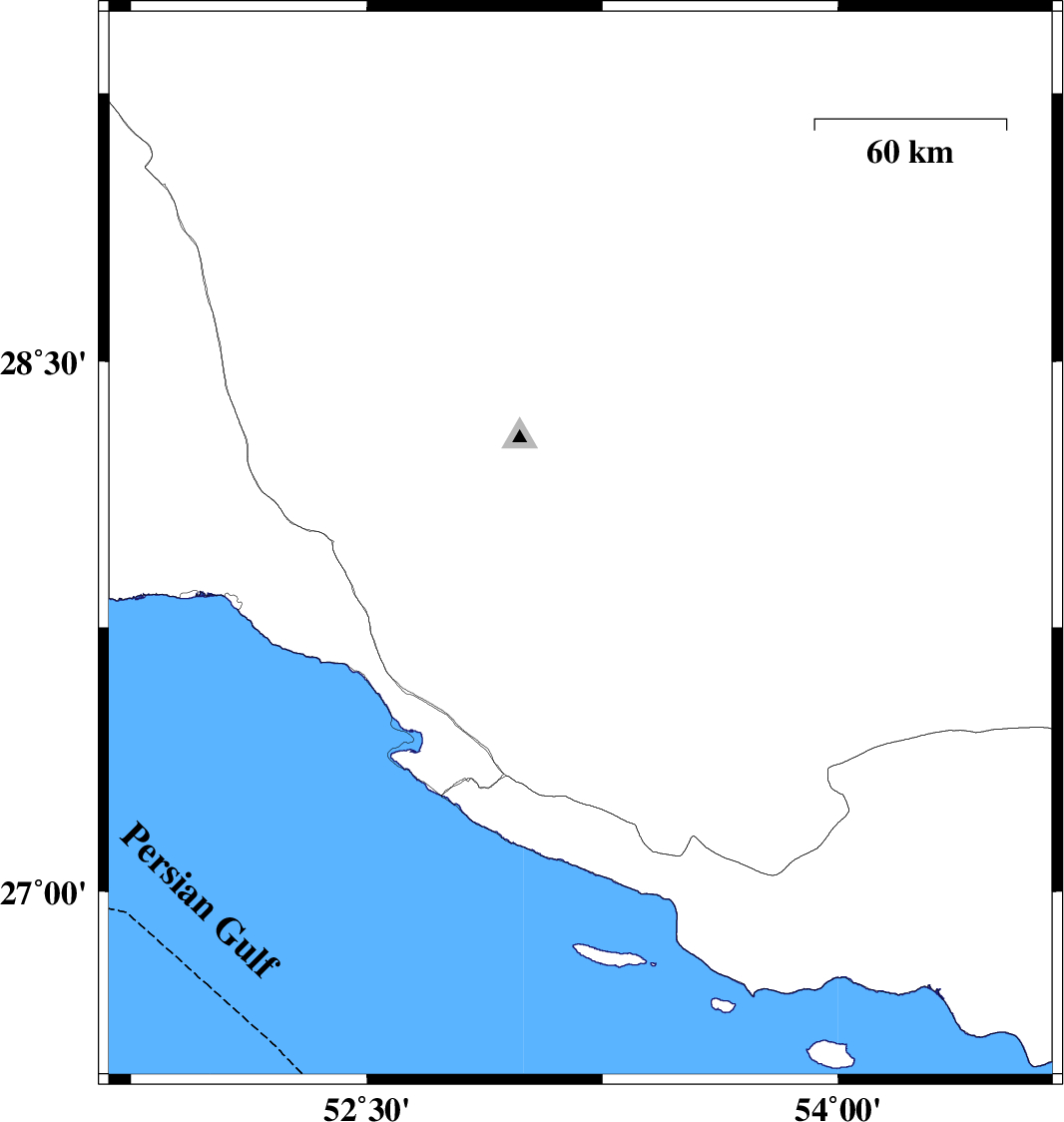 2009/08/08 | 08:06:51.8 | 12:36:51.8 | 27.98 | 53.18 | 24 | ML:3.3 | Fars Province, 56 km South-East of Qir va Karzin | ||