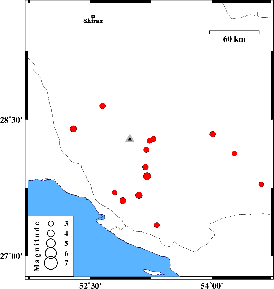 2009/08/08 06:36:44.8 11:06:44.8 27.6152.923 ML:3.5 Fars Province, 7 km Mehr