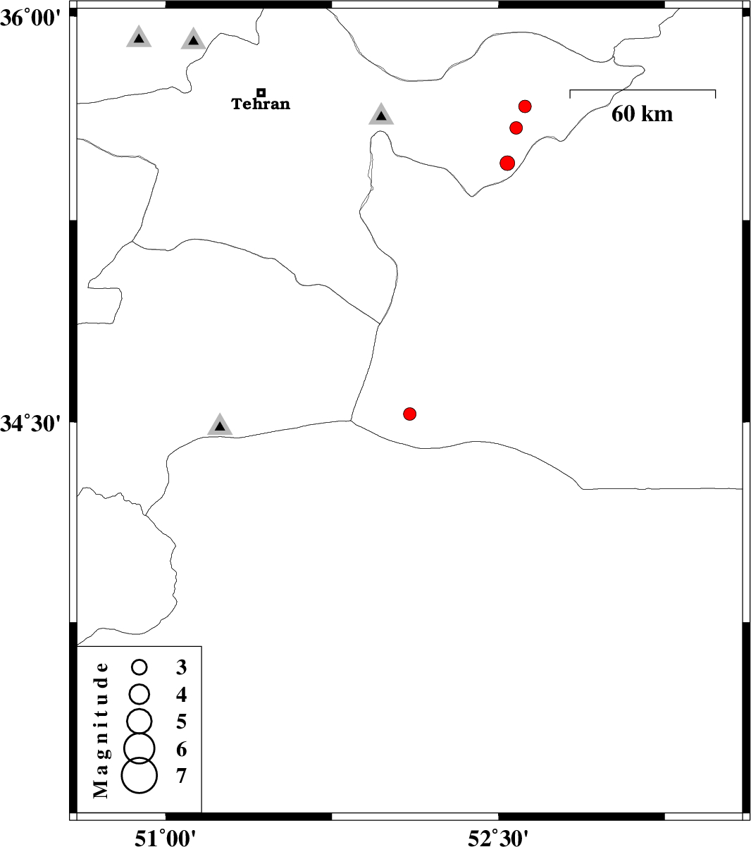 2009/08/15 | 15:51:10.9 | 20:21:10.9 | 35.46 | 52.54 | 15 | ML:3 | Tehran Province, 32 km North-East of Garmsar | ||