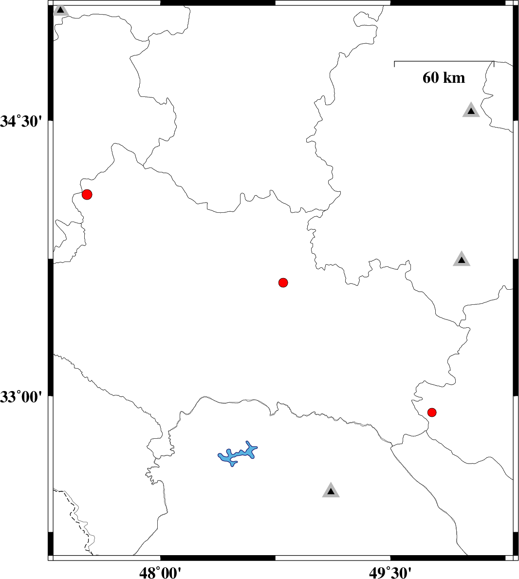 2009/09/16 | 15:10:49.1 | 19:40:49.1 | 34.1 | 47.52 | 14 | ML:2.9 | Lorestan Province, 20 km South of Harsin |