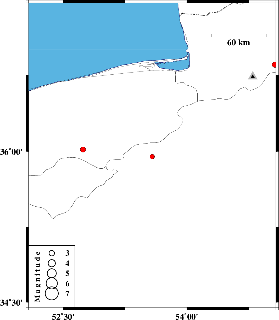 2009/09/28 | 19:11:39.3 | 22:41:39.3 | 35.95 | 53.58 | 14 | ML:2.5 | Semnan Province, 45 km North-East of Semnan | ||