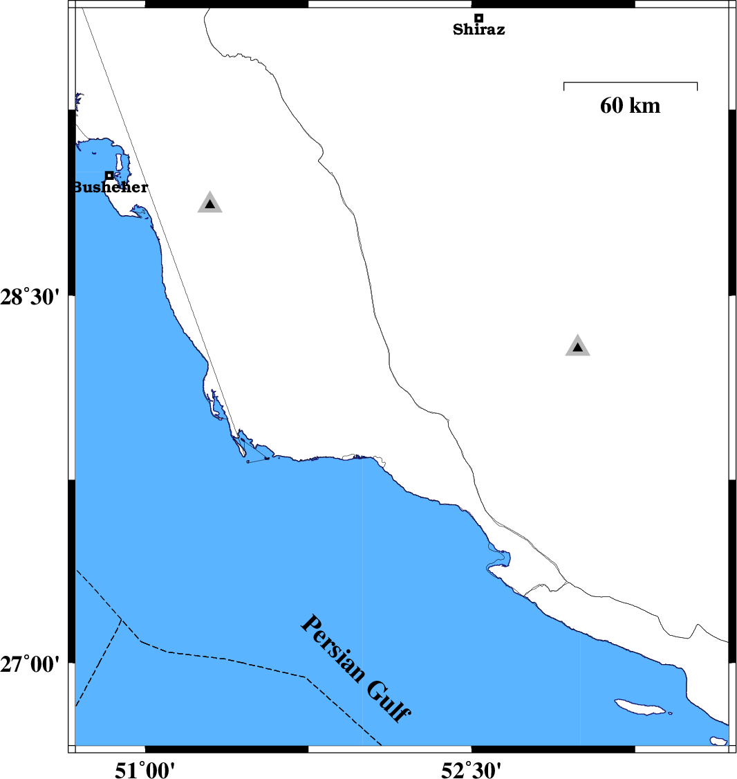 2010/03/27 | 00:48:01.8 | 05:18:01.8 | 28.07 | 53.32 | 43 | ML:2.9 | Fars Province, 53 km South-West of Jahrom | ||