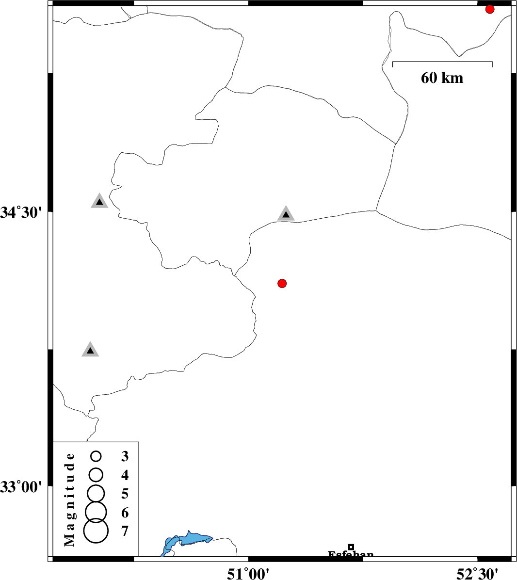 2009/09/18 | 23:47:59.1 | 04:17:59.1 | 32.91 | 49.77 | 18 | ML:2.5 | Esfahan Province, 32 km West of Fereydunshahr | ||