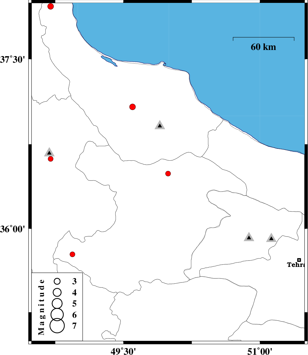 2009/09/17 | 13:40:04.4 | 18:10:04.4 | 37.08 | 49.6 | 14 | ML:2.9 | Gilan Province, 22 km South of Rasht |