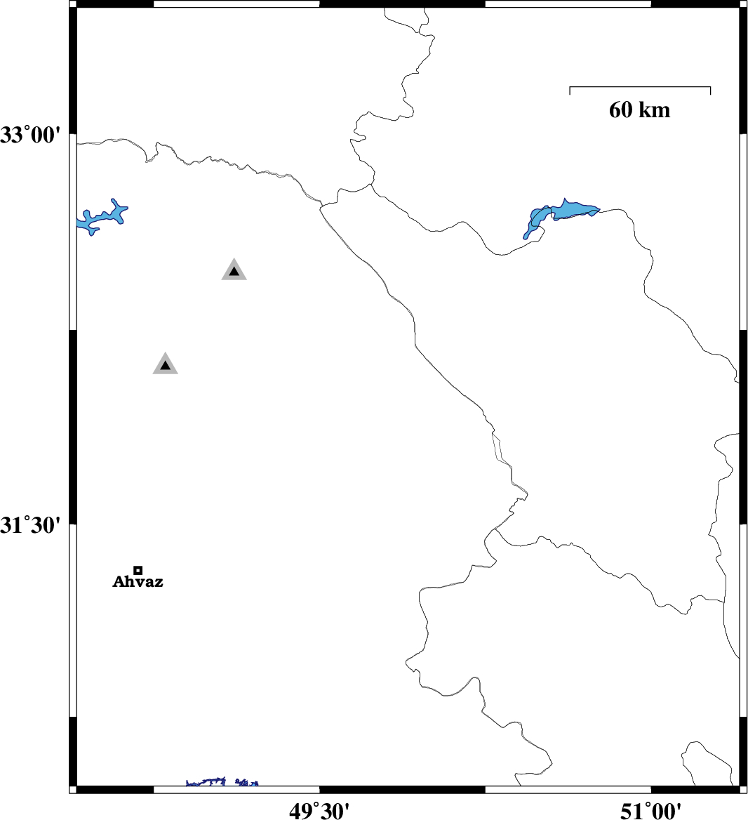 2009/10/18 | 11:12:29.7 | 14:42:29.7 | 31.98 | 49.9 | 14 | ML:3.1 | Khoozestan Province, 16 km North of Izeh | ||