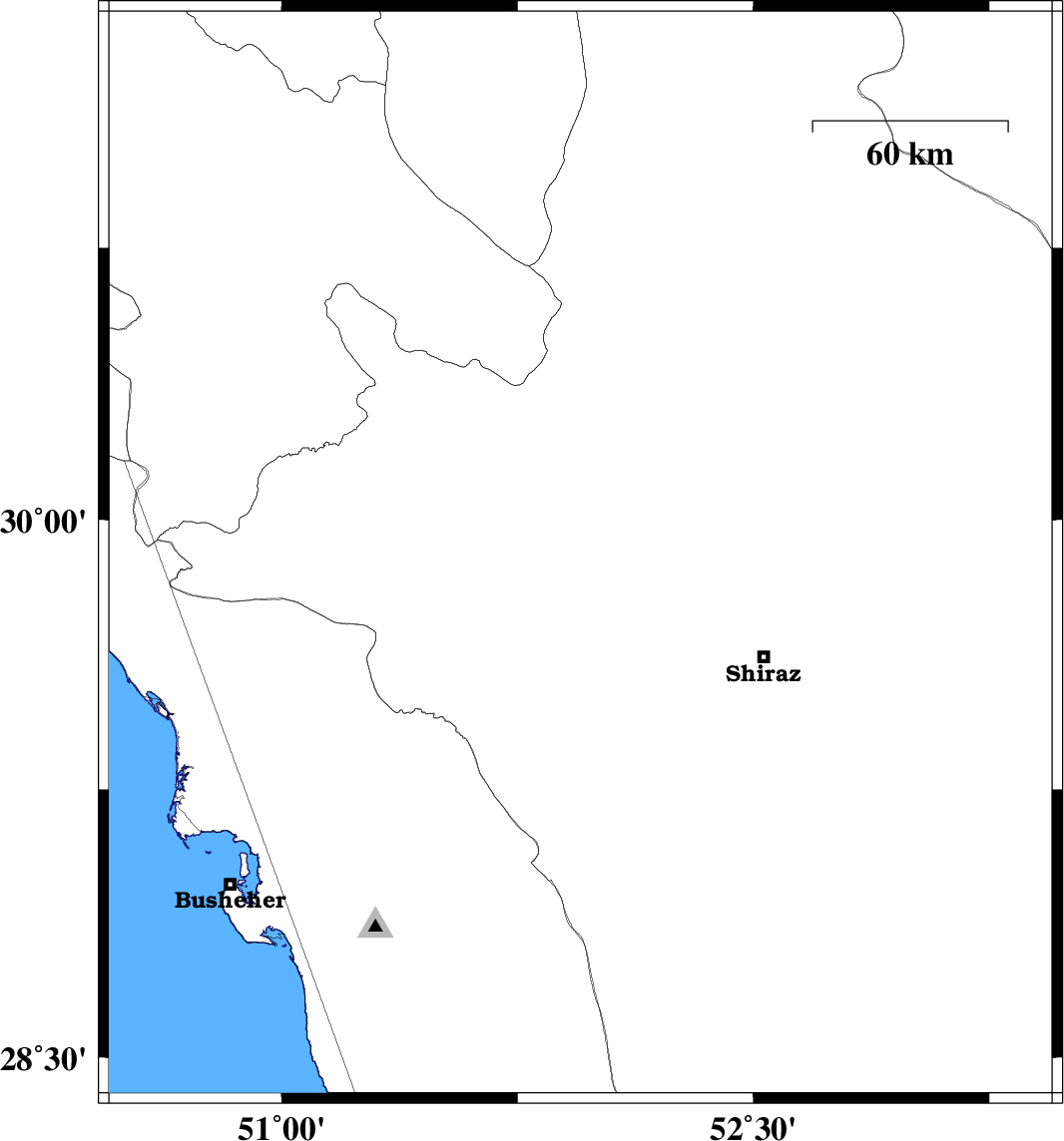 2009/10/22 | 17:04:25.2 | 20:34:25.2 | 29.52 | 52.03 | 15 | ML:2.8 | Fars Province, 38 km East of Kazerun |