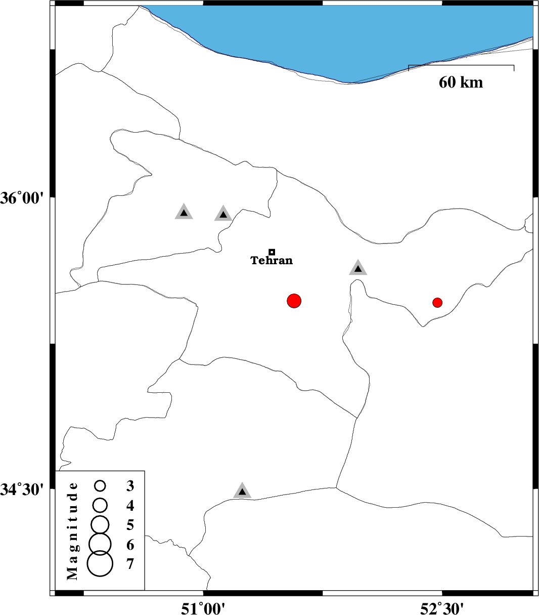 2009/10/10 | 16:54:19.5 | 20:24:19.5 | 35.46 | 52.47 | 15 | ML:2.7 | Tehran Province, 29 km North-East of Garmsar |