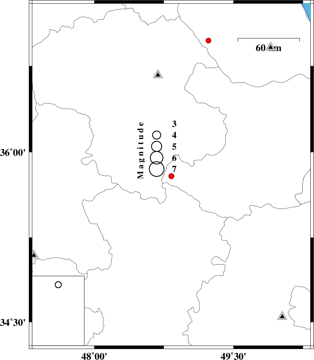 2009/11/18 | 00:47:11.3 | 04:17:11.3 | 35.79 | 48.83 | 14 | ML:2.7 | Ghazvin Province, 42 km South-East of Qeydar | ||