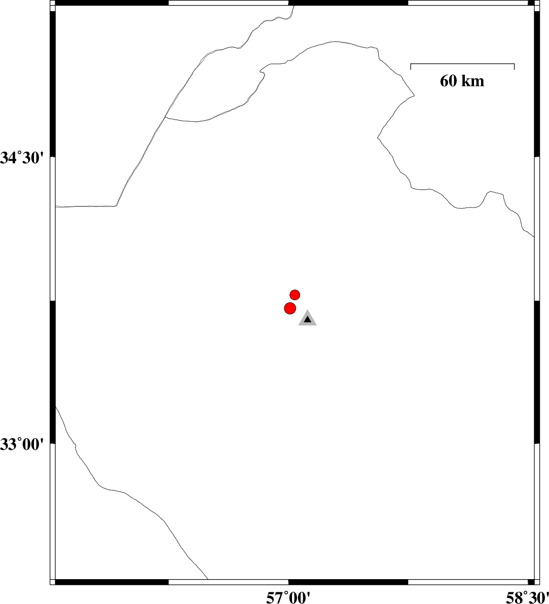 2009/11/02 | 04:17:21.8 | 07:47:21.8 | 33.78 | 57.04 | 8 | ML:2.8 | Yazd Province, 23 km North-East of Tabas | ||