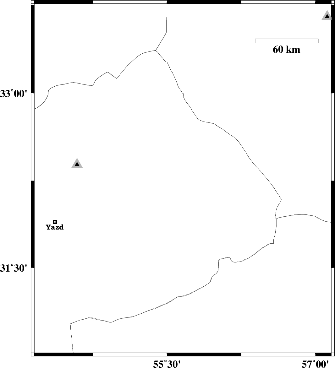 2009/11/27 | 06:40:14.1 | 10:10:14.1 | 32.26 | 55.66 | 14 | ML:3.5 | Yazd Province, 78 km North-East of Bafq | ||