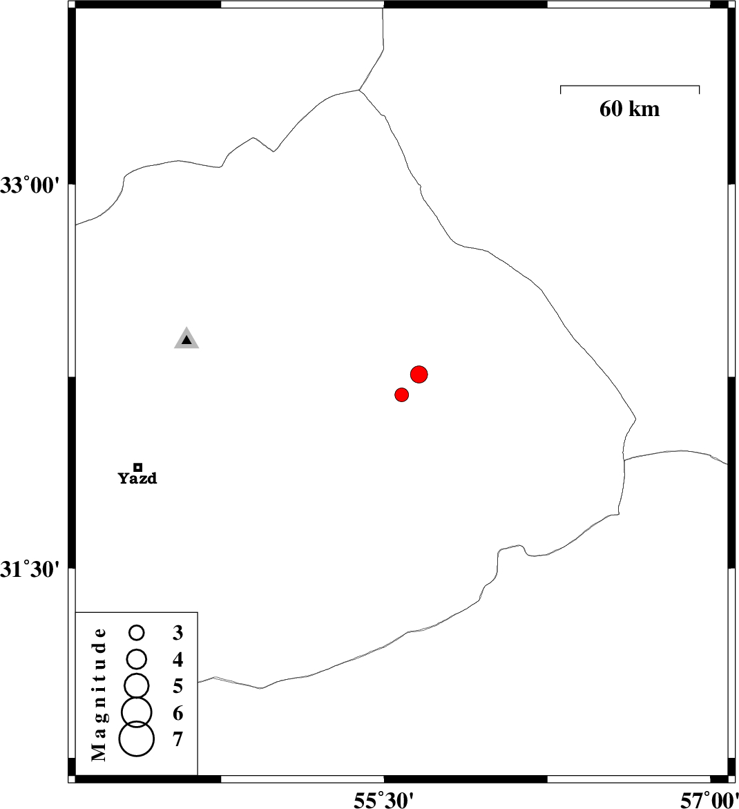 2009/12/01 | 09:32:00.8 | 13:02:00.8 | 32.18 | 55.58 | 14 | ML:2.8 | Yazd Province, 66 km North-East of Bafq | ||