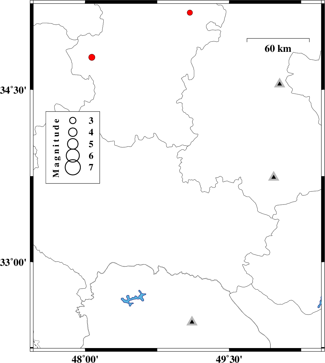 2009/12/04 | 06:02:18.8 | 09:32:18.8 | 33.35 | 47.94 | 32 | ML:3 | Lorestan Province, 30 km North-East of Pol-e dokhtar |