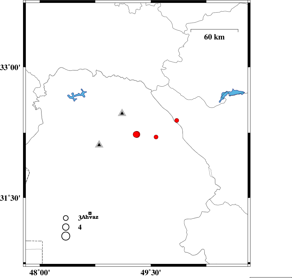 2009/12/25 | 06:37:59.0 | 10:07:59.0 | 32.26 | 49.05 | 15 | ML:3.9 | Khoozestan Province, 15 km South of Lali |