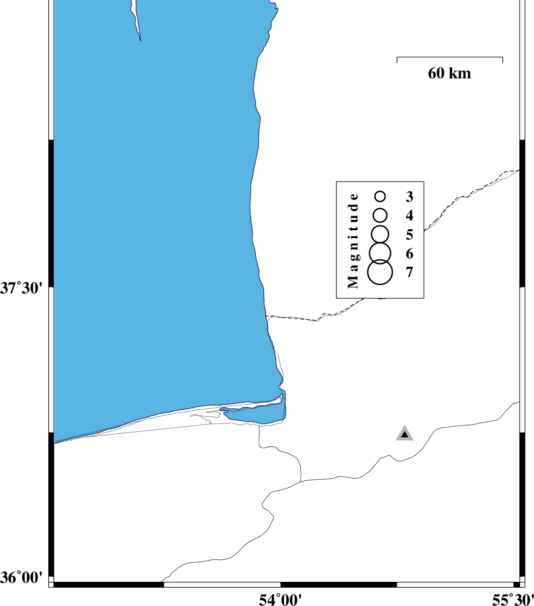 2009/12/09 | 01:49:12.1 | 05:19:12.1 | 37.47 | 54.04 | 15 | ML:3.4 | 63 km North of Bandar-e torkaman | ||