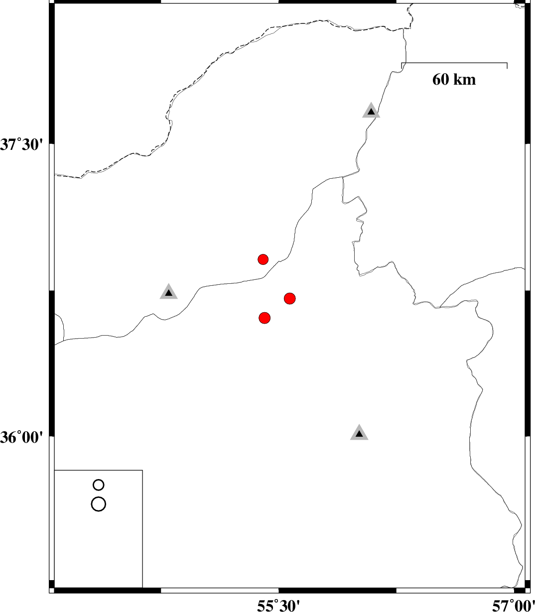 2009/12/08 | 17:26:29.8 | 20:56:29.8 | 36.91 | 55.4 | 46 | ML:2.9 | Golestan Province, 35 km South of Minodasht |