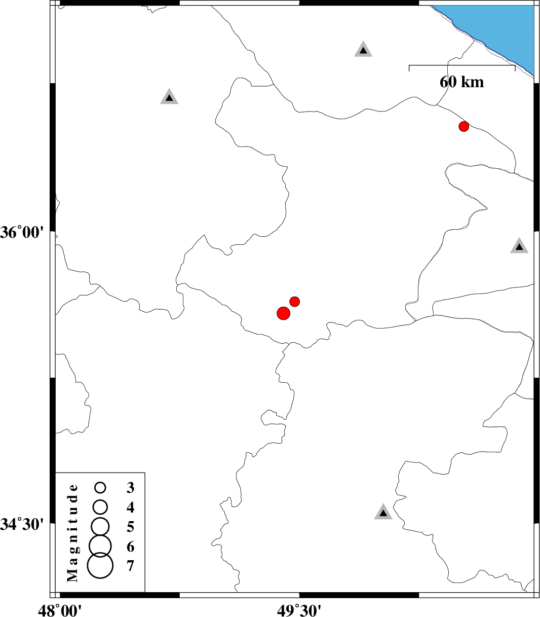 2010/03/27 | 05:34:50.2 | 10:04:50.2 | 36.53 | 50.53 | 14 | ML:2.8 | Ghazvin Province, 43 km South-West of Ramsar |