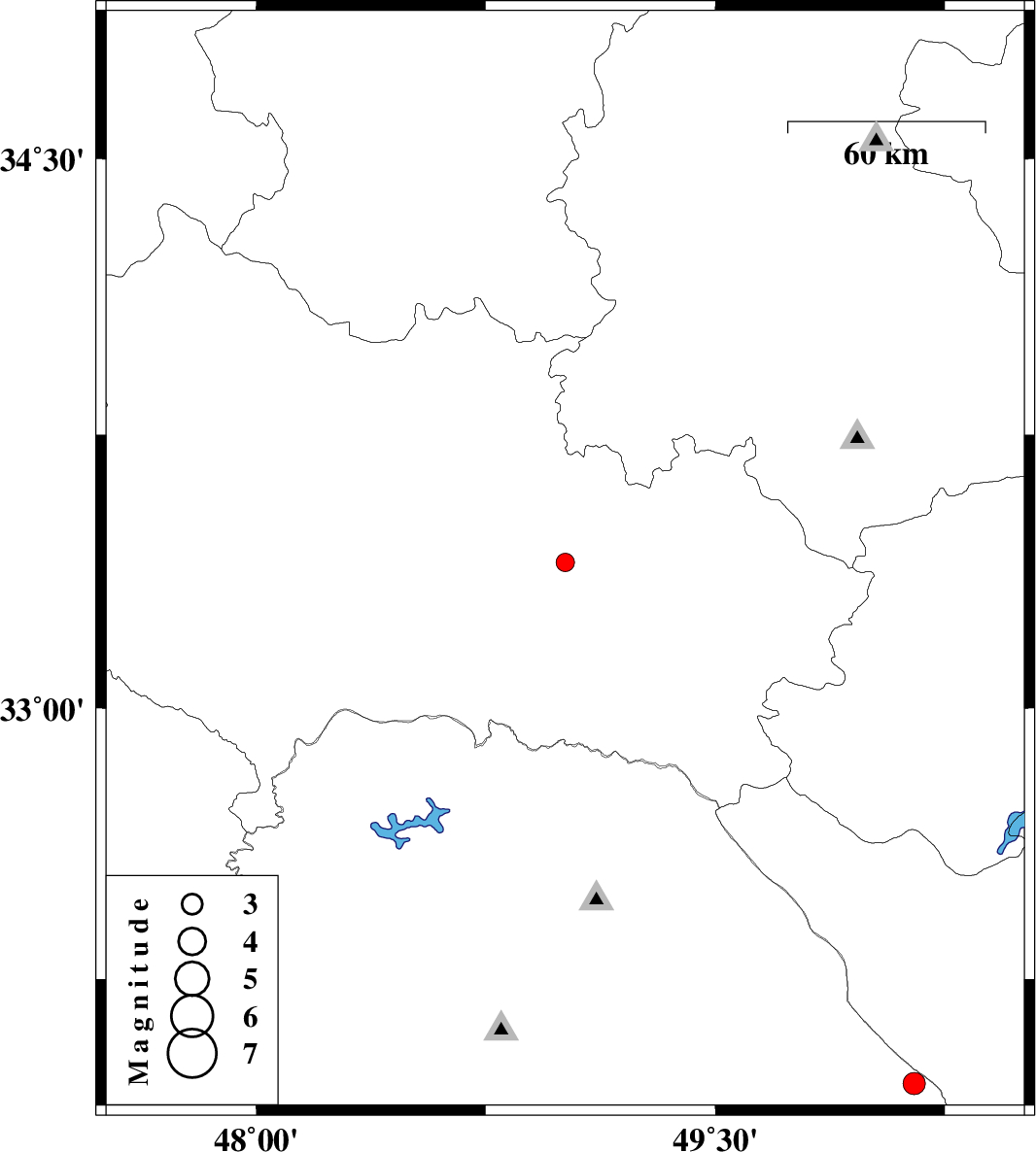 2010/04/06 | 19:31:32.5 | 00:01:32.5 | 33.4 | 49.01 | 18 | ML:2.7 | Lorestan Province, 11 km Dorud | ||
