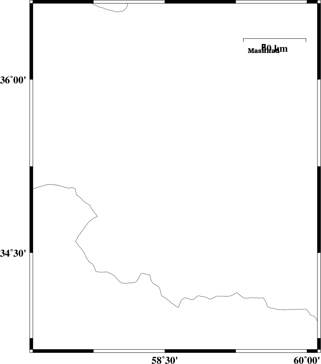 2010/04/12 | 09:34:04.0 | 14:04:04.0 | 34.91 | 58.6 | 14 | ML:3.4 | Khorasan(center) Province, 38 km South-East of Kashmar | ||