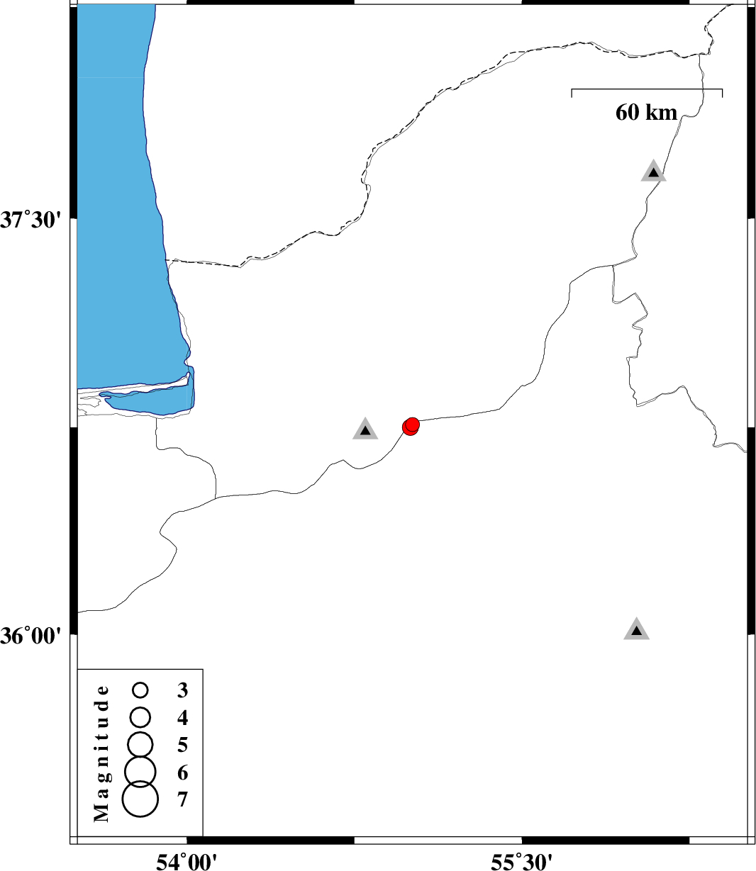 2010/04/30 | 18:41:38.3 | 23:11:38.3 | 36.75 | 55 | 14 | ML:3.2 | Semnan Province, 21 km South-East of Ali Abad |