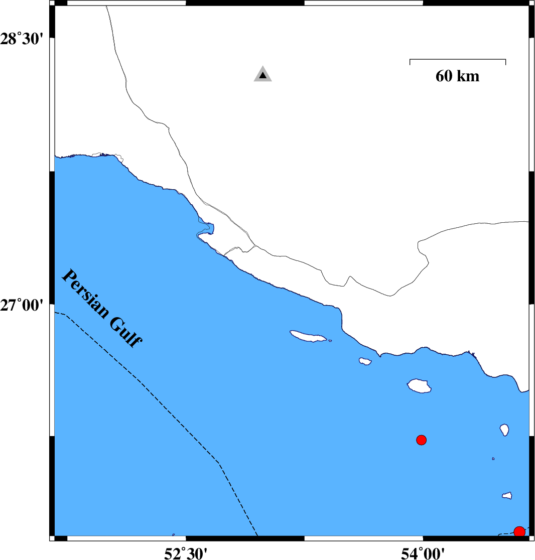 Persian Gulf, 31 km South-West of Lamerd | |