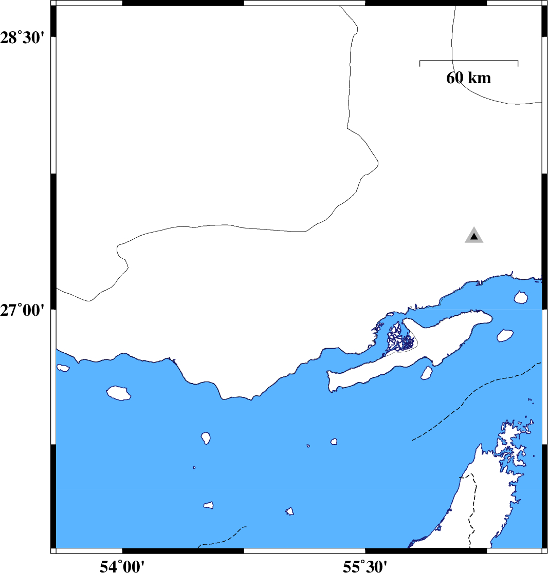 2010/05/14 | 09:33:18.7 | 14:03:18.7 | 27.1 | 54.96 | 41 | ML:4.5 | Hormozgan Province, 65 km North-East of Bandar-e lengeh | ||