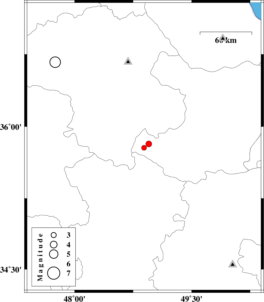 2010/05/20 | 09:52:28.7 | 14:22:28.7 | 35.78 | 48.89 | 14 | ML:3.5 | Ghazvin Province, 46 km North-West of Razan |