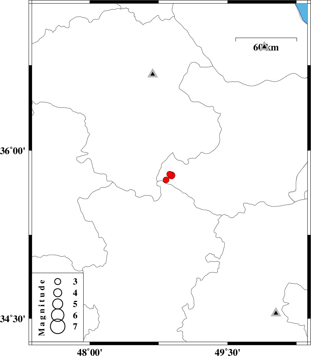 2010/05/20 | 09:52:28.7 | 14:22:28.7 | 35.78 | 48.89 | 14 | ML:3.5 | Ghazvin Province, 46 km North-West of Razan |