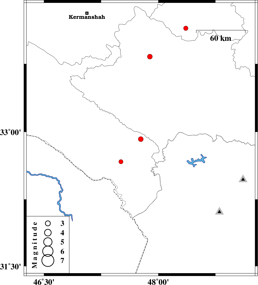 2010/06/14 | 20:03:17.3 | 00:33:17.3 | 33.83 | 47.89 | 15 | ML:2.9 | Lorestan Province, 29 km South of Nurabad | ||