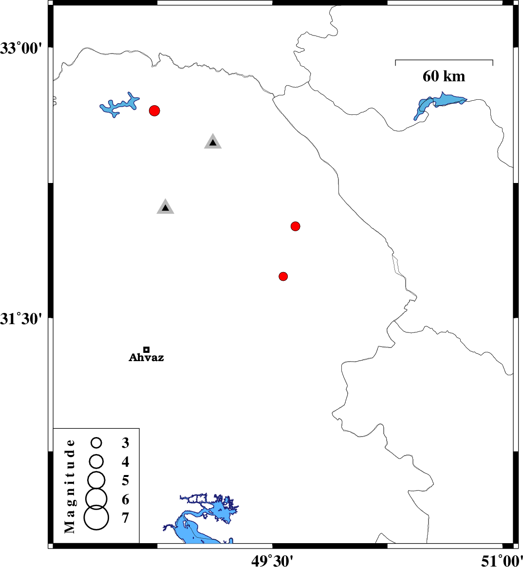 2010/08/04 | 23:34:56.5 | 04:04:56.5 | 32.65 | 48.73 | 14 | ML:3.1 | Khoozestan Province, 41 km North-East of Andimeshk |