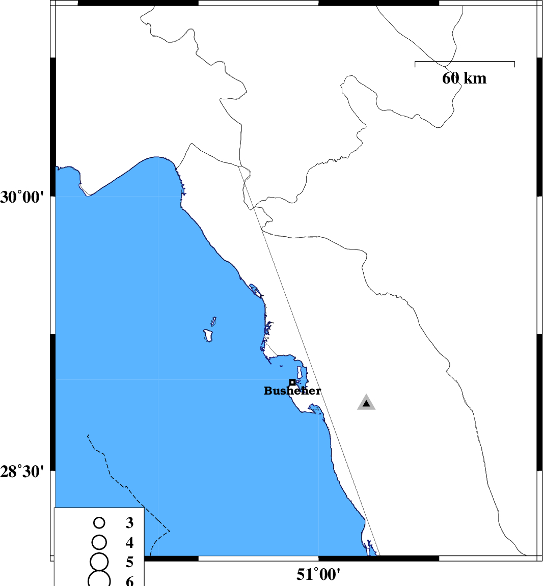 2010/08/15 | 01:48:48.7 | 06:18:48.7 | 29.45 | 51.04 | 18 | ML:3.2 | Bushehr Province, 26 km North-West of Borazjan |