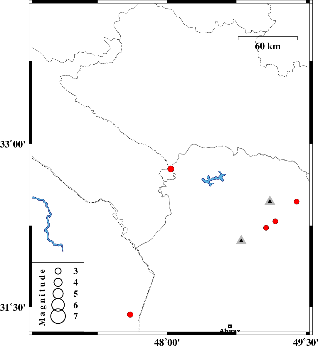 2010/09/21 | 23:47:31.3 | 03:17:31.3 | 32.77 | 48.04 | 14 | ML:3.1 | Lorestan Province, 45 km North-West of Andimeshk | ||