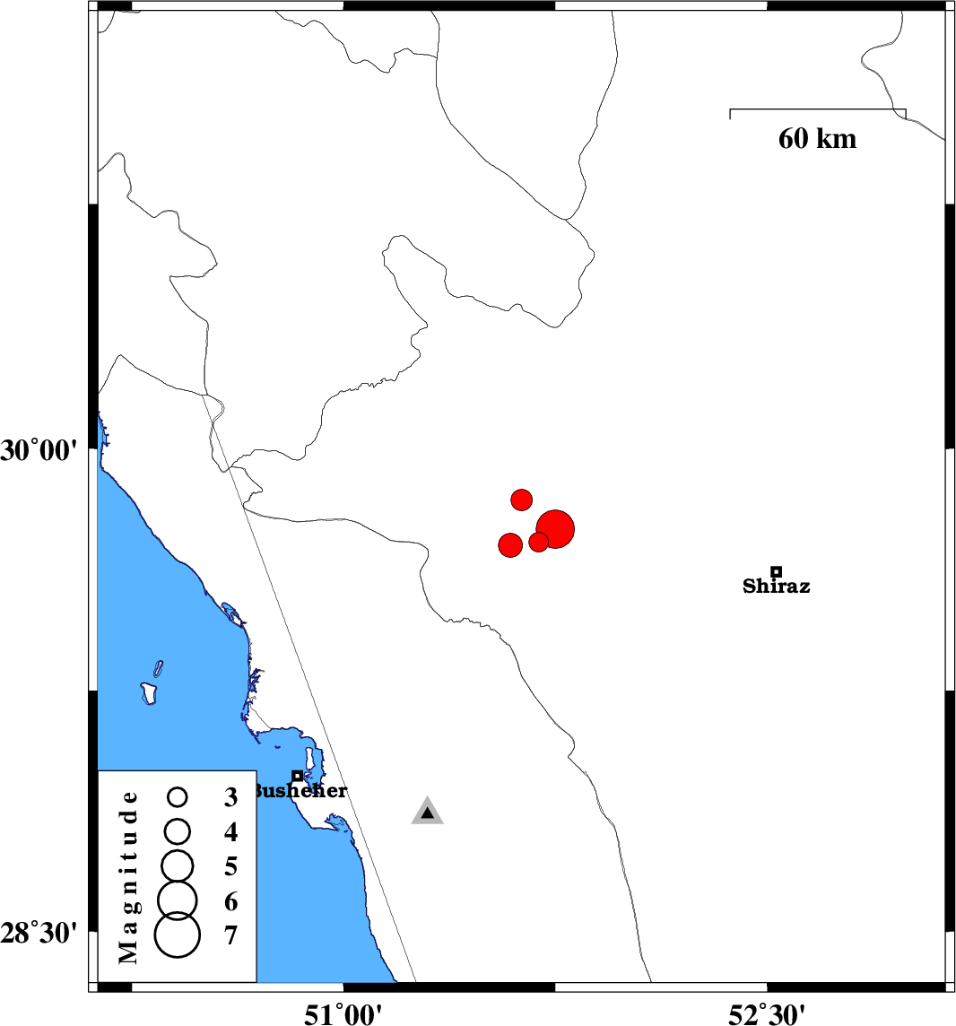 2010/09/27 | 11:22:44.6 | 14:52:44.6 | 29.75 | 51.75 | 15 | ML:6 | Fars Province, 17 km North of Kazerun |
