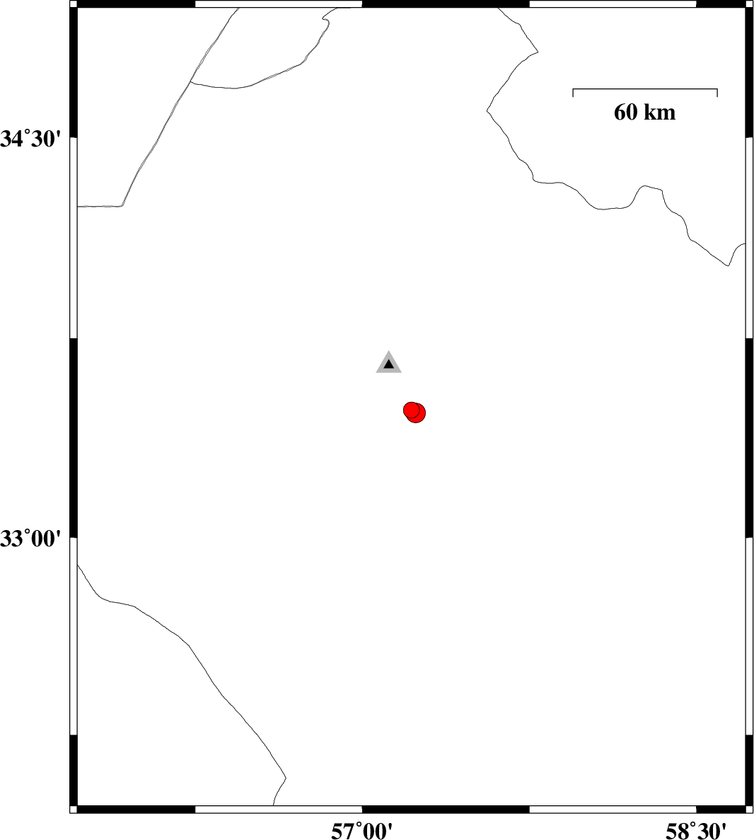 2010/10/06 | 23:47:58.2 | 03:17:58.2 | 33.47 | 57.24 | 15 | ML:4 | Yazd Province, 32 km South-East of Tabas |