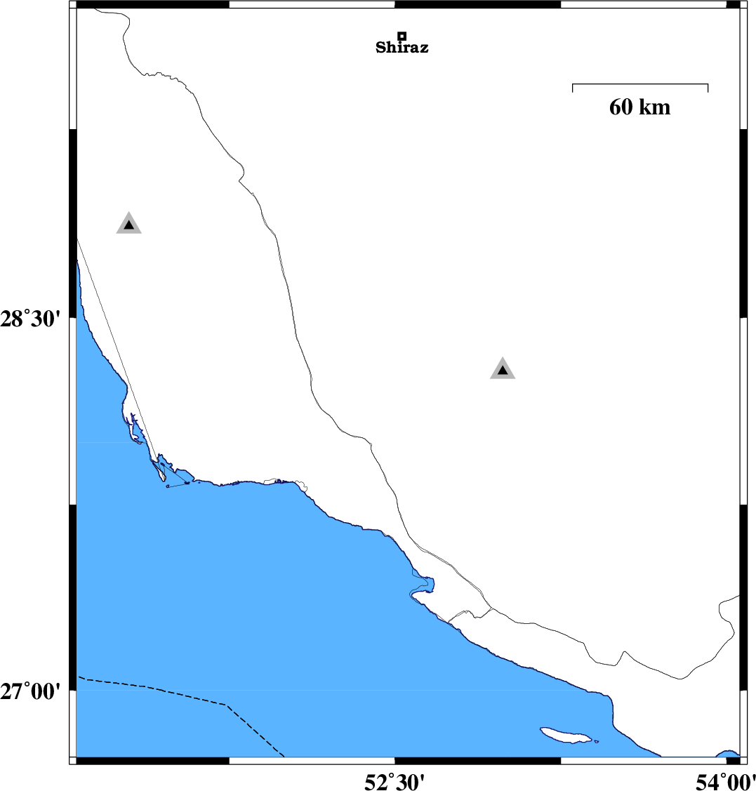 2010/11/26 12:33:44.5 16:03:44.5 28.2652.629 ML:5.4 Fars Province, 63 km South of Firuz Abad