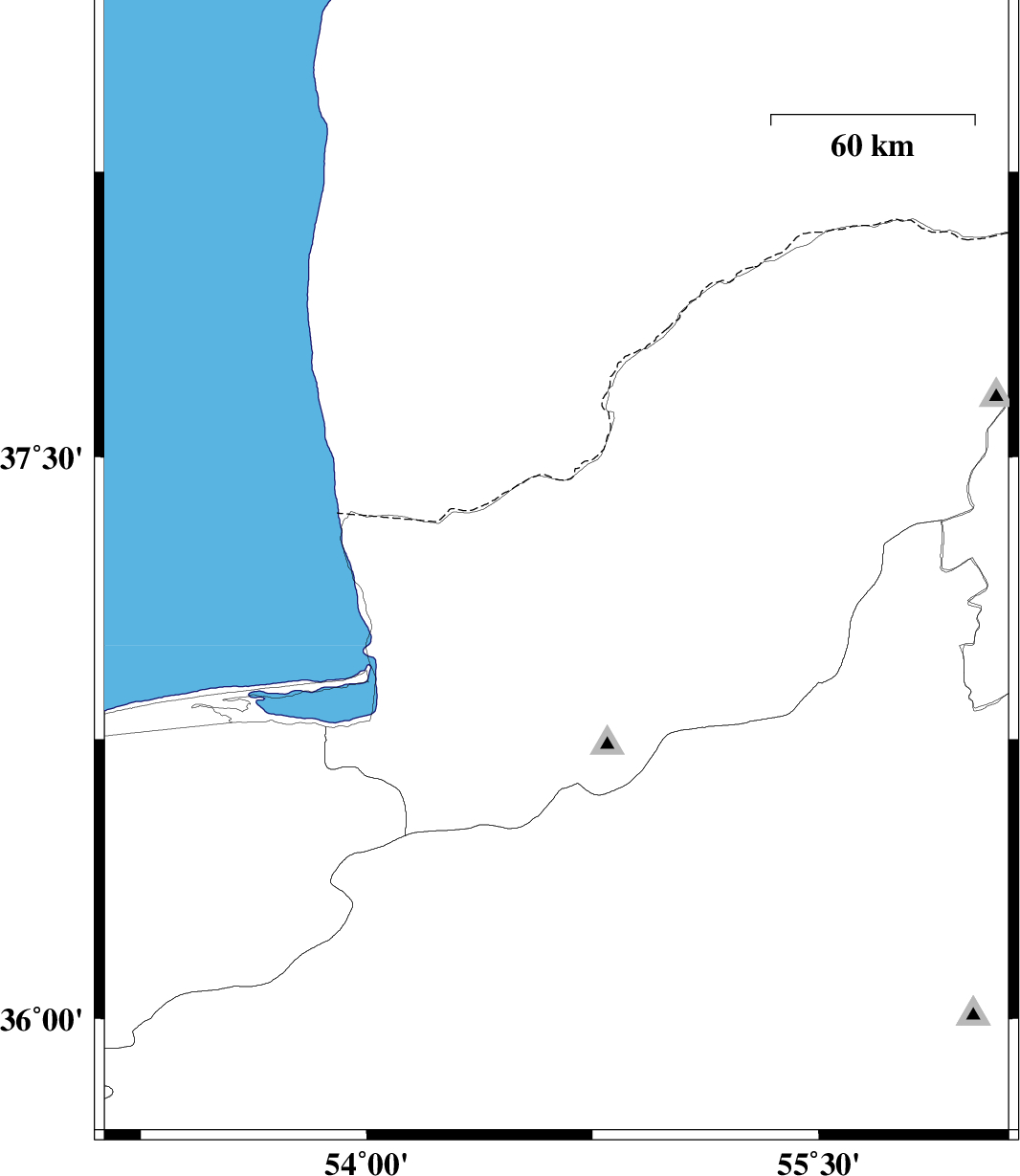 | 2012/04/09 | 09:23:46.3 | 13:53:46.3 | 37.2 | 54.63 | 28 | ML:2.8 | Golestan Province, 26 km North-East of Aq Qaleh | ||