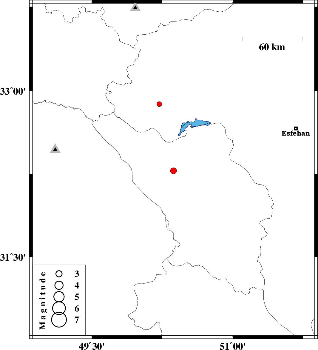 | 2012/04/13 | 14:36:12.5 | 19:06:12.5 | 32.88 | 50.22 | 15 | ML:2.4 | Esfahan Province, 13 km East of Fereydunshahr | ||