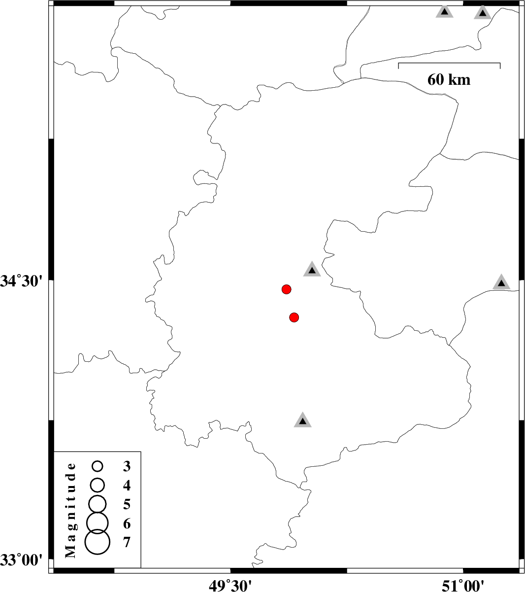 | 2012/05/23 | 22:04:12.4 | 02:34:12.4 | 34.45 | 49.86 | 15 | ML:2.7 | Markazi Province, 16 km West of Ashtiyan | ||