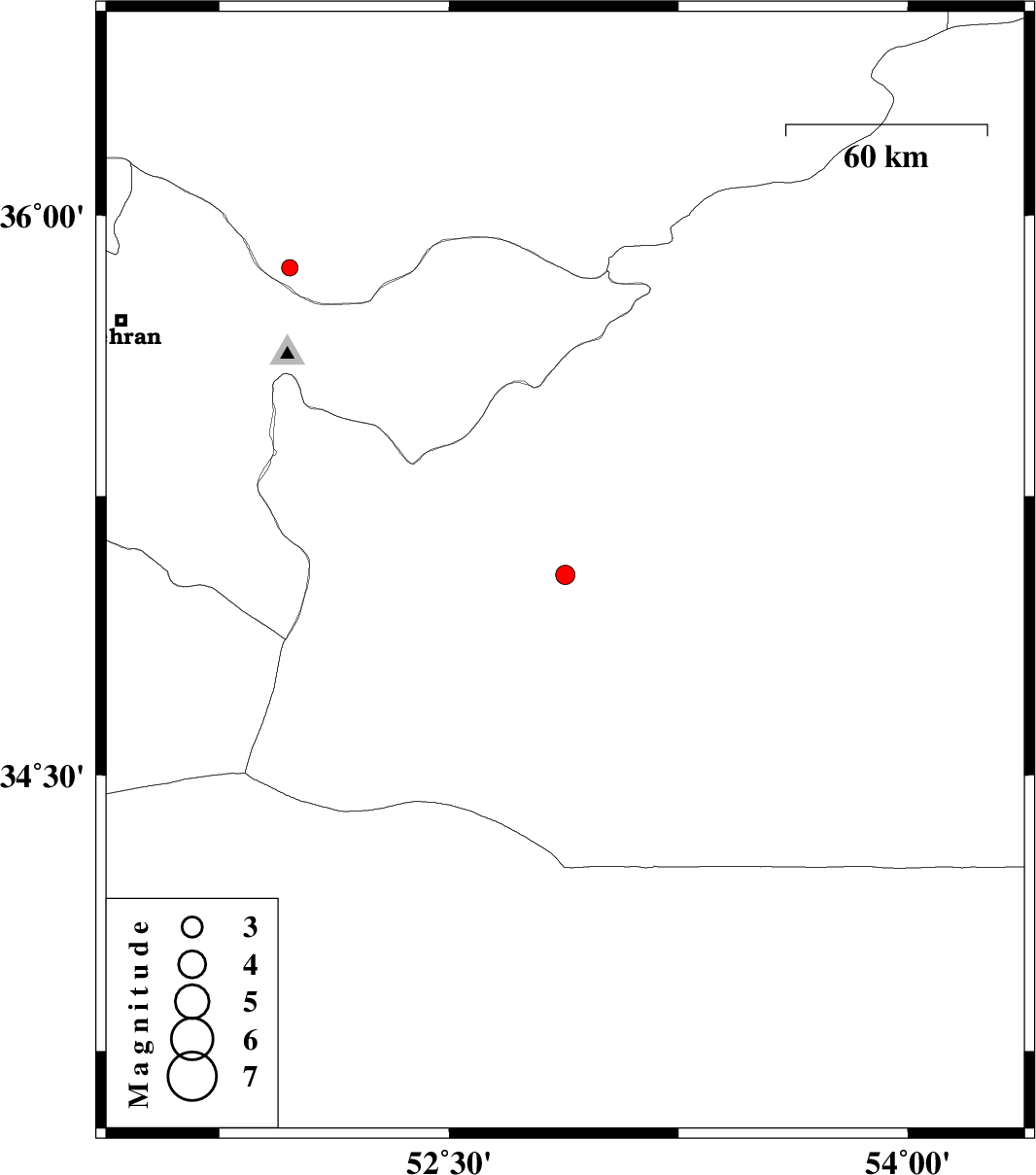 | 2012/06/03 | 17:00:57.7 | 21:30:57.7 | 35.04 | 52.88 | 25 | ML:2.8 | Semnan Province, 53 km South-East of Garmsar | ||
