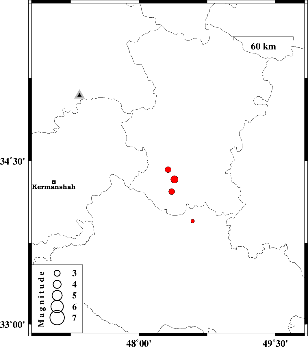 | 2012/05/30 | 03:16:20.5 | 07:46:20.5 | 34.22 | 48.36 | 15 | ML:3 | Hamedan Province, 3 km Nahavand | ||