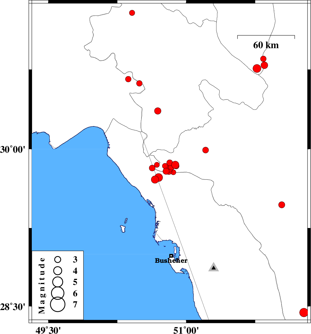 2012/06/04 19:04:19.9 23:34:19.9 29.8250.6346 ML:2.9 Bushehr Province, 29 km North-East of Bandar-e genaveh