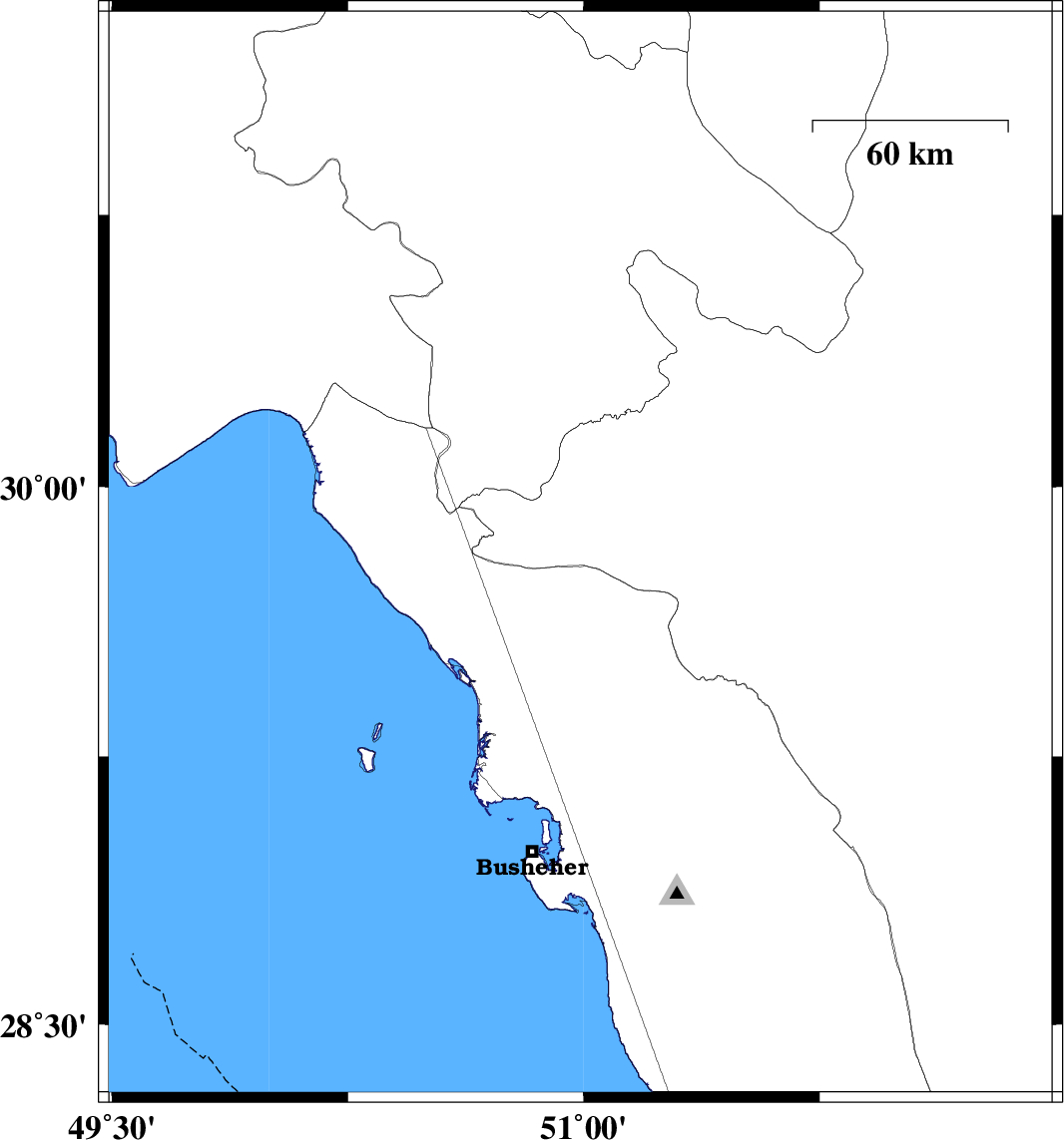 2012/06/04 19:04:19.9 23:34:19.9 29.8250.6346 ML:2.9 Bushehr Province, 29 km North-East of Bandar-e genaveh